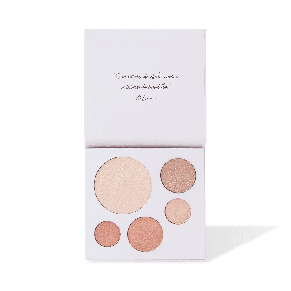 - Paleta de Iluminadores Angel Wings by Pri Lessa, com tons em pó e cremosos, pode ser usada nas maçãs, nariz, arco do cupido e sobrancelhas;