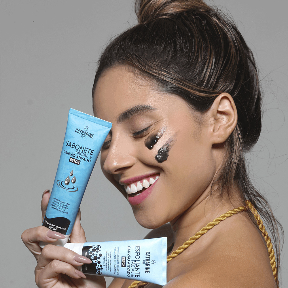 A esfoliação é uma grande aliada nesse momento, pois ajuda a renovar a pele e melhorar sua textura. Para isso, use o Esfoliante Facial da Catharine Hill. Sua fórmula com carvão ativado absorve toxinas, poluentes e controla a oleosidade, prevenindo cravos e espinhas. Ele também ajuda a remover células mortas e suavizar a pele e tem propriedades antioxidantes e anti-inflamatórias.