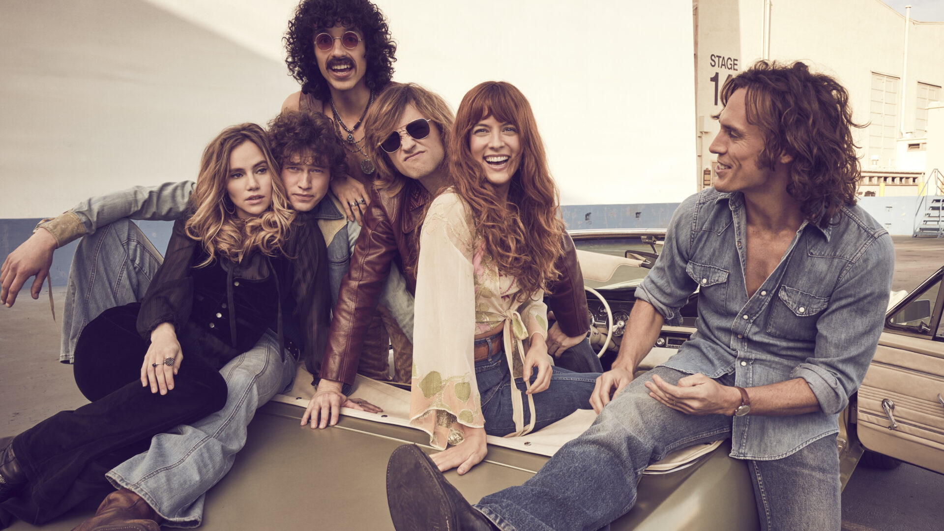 A ambientação de Daisy Jones & The Six mergulha na cena rock de Los Angeles do final dos anos 1960 e 1970, com forte influência da estética boho-chic e folk. Predominam tons terrosos, materiais naturais e, claro, looks incríveis.