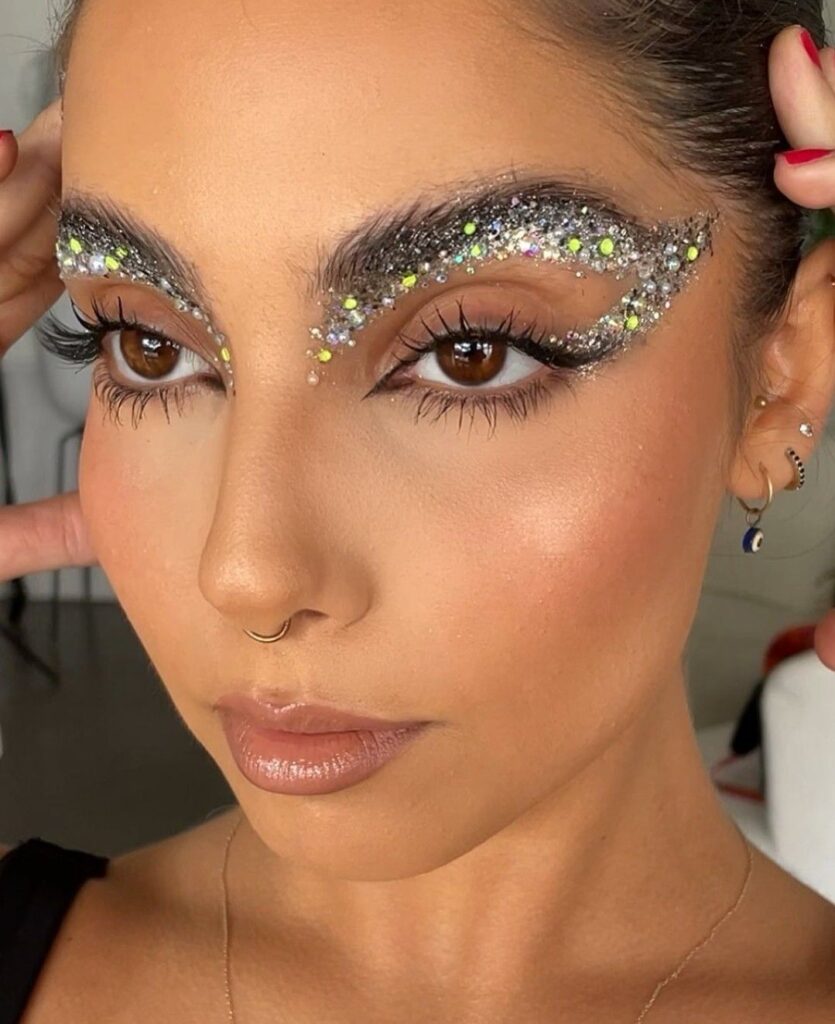 Essa é uma dica perfeita para quem acordou atrasado, precisa se maquiar rápido e sair correndo atrás do bloco. A sobrancelha de glitter é prática, divertida e entrega impacto imediato com pouquíssimo esforço, ideal para o Carnaval 2026.