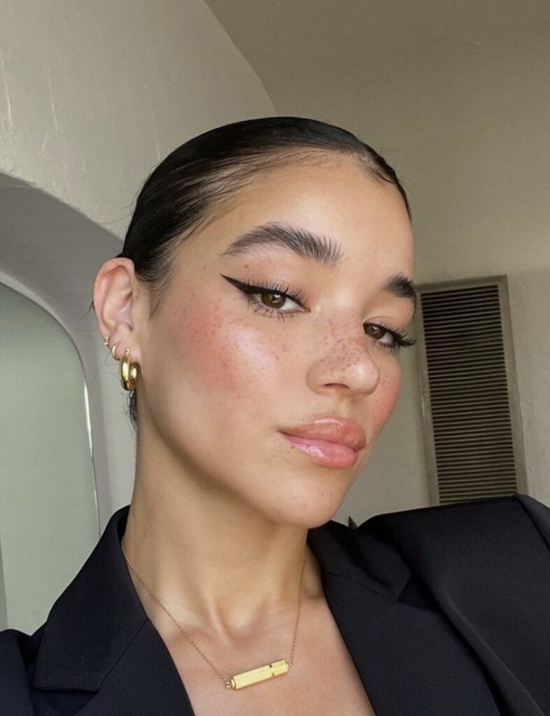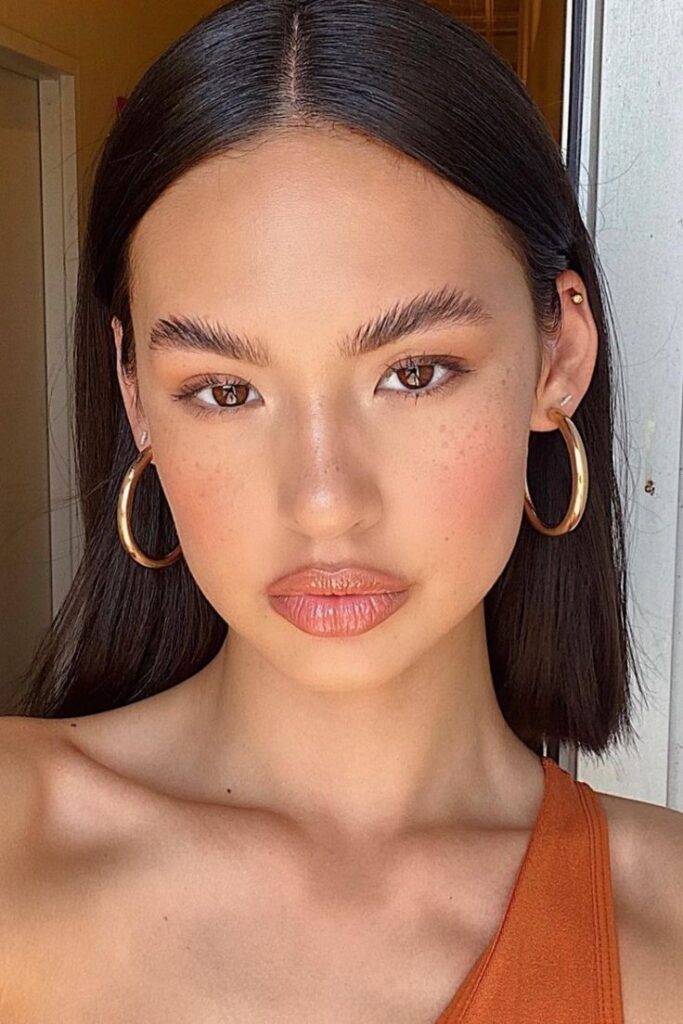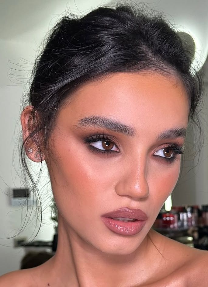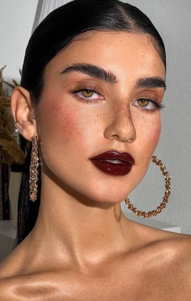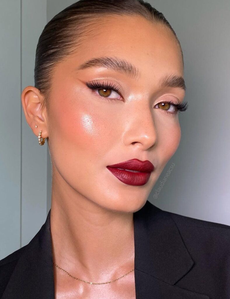 A maquiagem minimalista é perfeita para os eventos de fim de ano, trazendo um visual atemporal e sofisticado. Aqui, a ideia é valorizar uma pele bem construída e impecável e apostar em tons neutros, sobrancelhas penteadas para cima e boca glossy.
