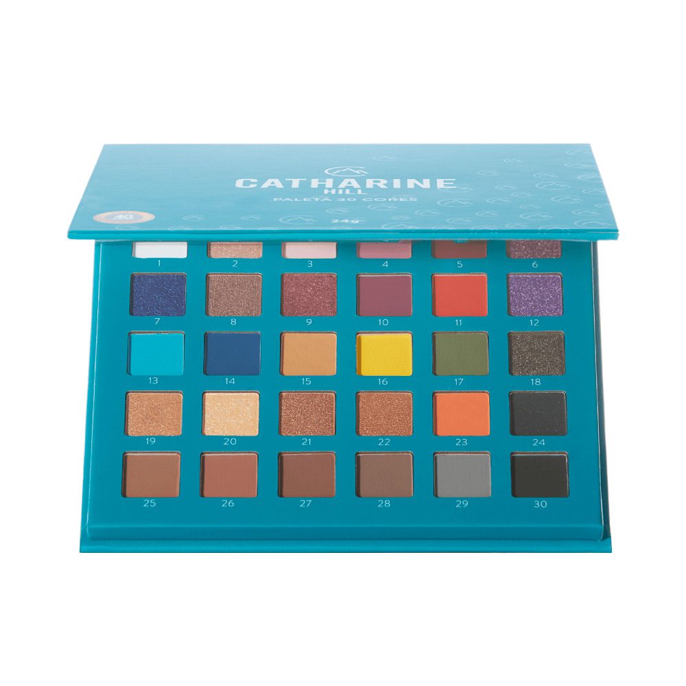 - Sombras marrons e cobre cintilante: a Paleta de 30 Cores Catharine Hill é a escolha perfeita. Ela traz diferentes tons de marrom, entre opacos e cintilantes. Você pode usar uma única cor para dar profundidade às pálpebras ou construir um esfumado mais elaborado para eventos noturnos.